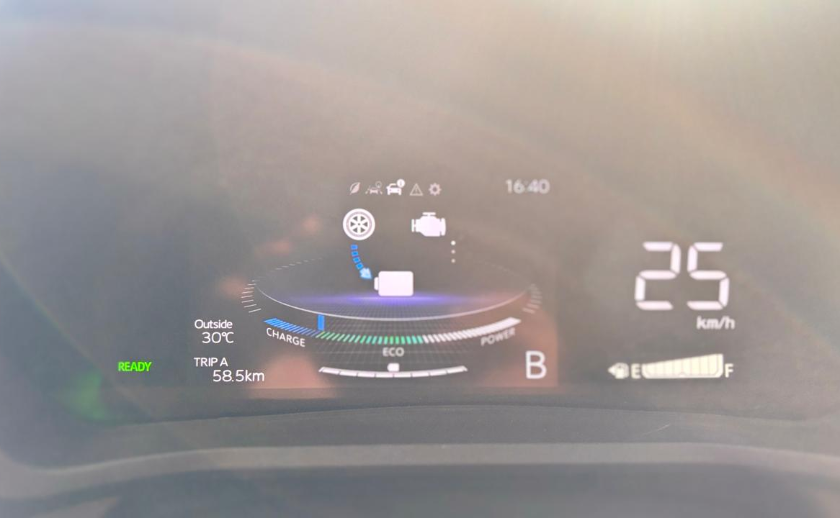 Alhasil saat kami tes, dan ketika membutuhkan tenaga instan untuk menyalip, mesin bensin dan motor listrik bekerja sama memberikan torsi tambahan yang cukup responsif.