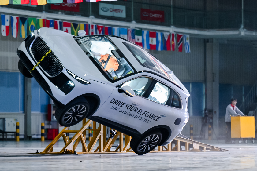 Sementara pada uji Rollover, mobil ini menabrak pada kecepatan 60 km/jam dan tetap mempertahankan struktur bodi dengan baik berkat penggunaan baja hot-stamped 1500 MPa dan sistem perlindungan berlapis.