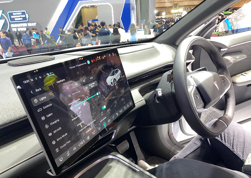Pada bagian dasbor dilengkapi material berkualitas, layar besar 15.6 inci touchscreen, serta sistem infotainment canggih.