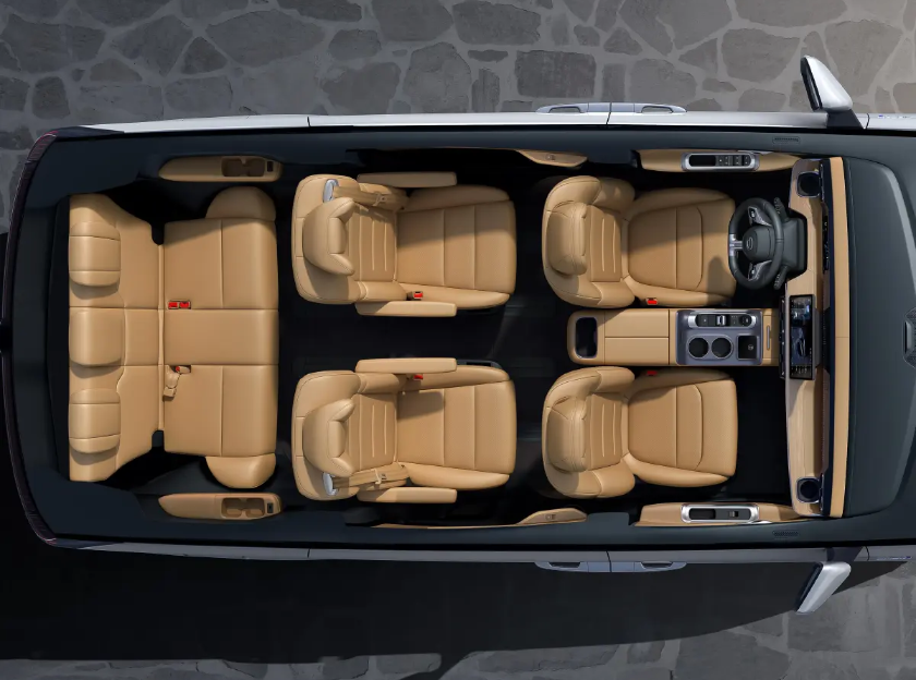 Kabin luasnya dilengkapi panoramic sunroof, layar sentuh berukuran besar, panel instrumen digital, konektivitas 5G, serta sistem navigasi berbasis kecerdasan buatan.