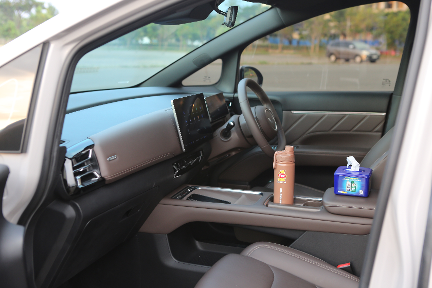 Ruang kaki sangat lapang, berkat platform khusus EV, lantainya benar-benar rata. Bahkan untuk penumpang dewasa di baris ketiga pun tidak merasa "dianaktirikan".