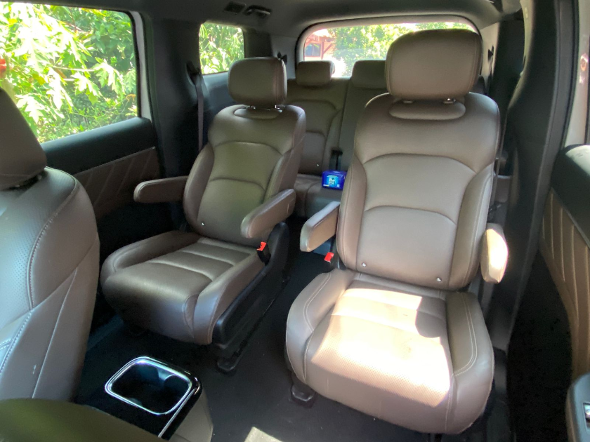 Trus saya bilang, pada penumpang baris ke-2 memang lebih nyaman selain kedua jok dengan pengaturan elektrik, ruang kaki lega, banyak ruang penyimpanan barang dan tempat minum yang membuat lebih eksklusif saat duduk, ada tirai kaca jendela lagi.