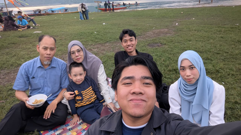 Makin asyik saat kami bersantai di pinggir danau, lalu saya iseng bertanya bapak dan ibu yang duduk di baris ke-2.
