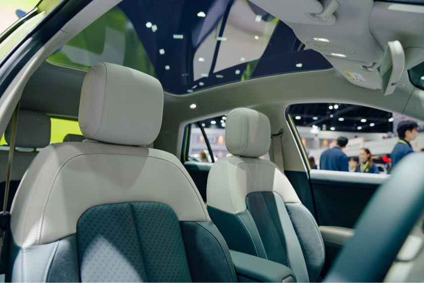 Jok yang dapat diatur dengan fitur pijat dan ventilasi, Layar sentuh tengah 13,2 inci, Sistem suara Dolby Atmos 14 speaker, lampu Ambient 256 warna dan Kompartemen penyimpanan di bawah jok.