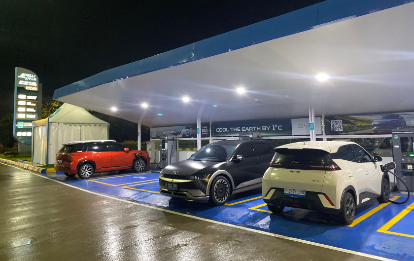Karena hampir semua rest area menyediakan Stasiun Pengisian Kendaraan Listrik Umum (SPKLU).