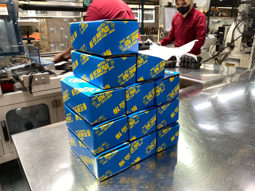 Kampas rem di kemasan yang rapi, siap dikirim ke konsumen