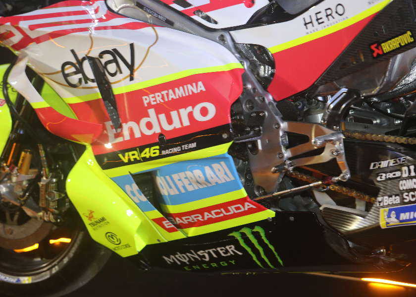 Lubang depan motor Pertamina Enduro VR46 Racing Team yang tadinya warna kuning fluo, diganti warna merah sebagai ciri Indonesia