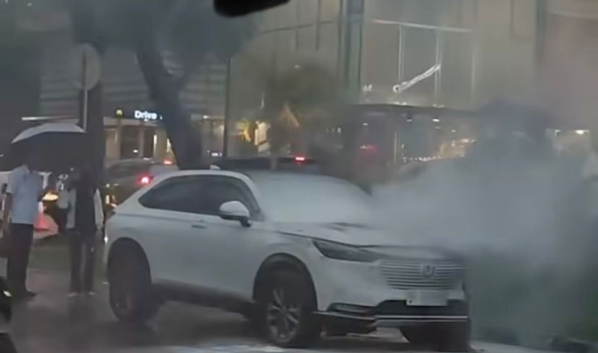Honda HR-V terbakar di samping Graha Family Surabaya, senin (10/11/2025)