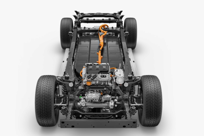 Hilux listrik (BEV) mengandalkan dua motor listrik yang ditenagai baterai lithium-ion berkapasitas 59,2 kWh.