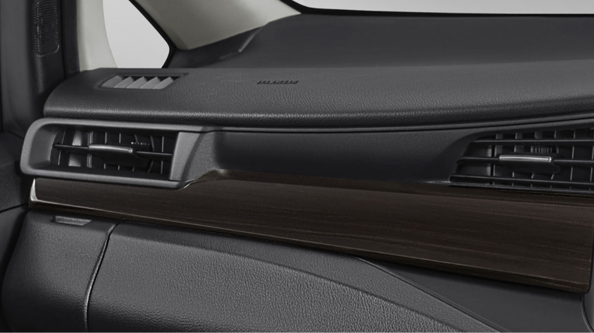 Lanjut ke interior Innova, pada bagian dasbor terdapat ornamen baru panel kayu, yang meningkatkan kesan mewah dan kenyamanan di dalam kabin.